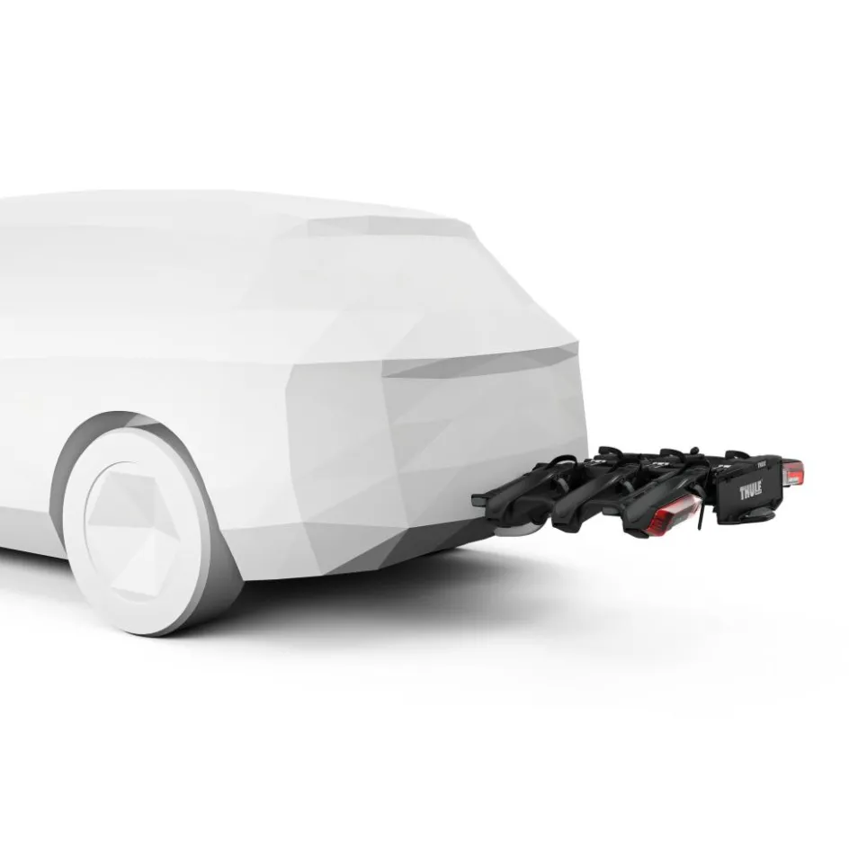 De Thule Epos 3-bike fietsendrager is een veelzijdige en robuuste oplossing voor het vervoeren van drie fietsen, inclusief zware e-bikes tot 30 kilogram per fiets. Dankzij de ruime afstand van 25 centimeter tussen de fietsen wordt het risico op contact en schade verminderd. Met de extra lange wielhouders kunnen fietsen met een lange wielbasis tot 135 centimeter eenvoudig worden vervoerd.