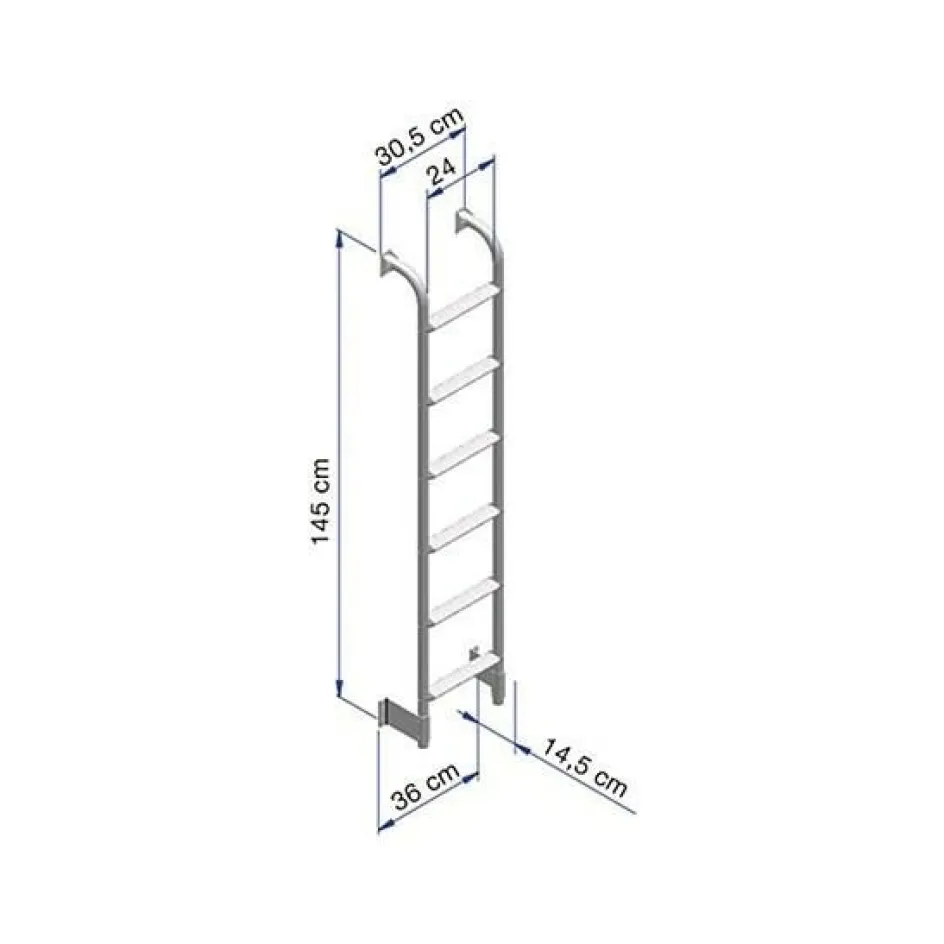 De Thule Omni-ladder beschikt over 6 treden. De ladder is gemaakt uit geanodiseerd aluminium en heeft roestvrije bevestigingsonderdelen.