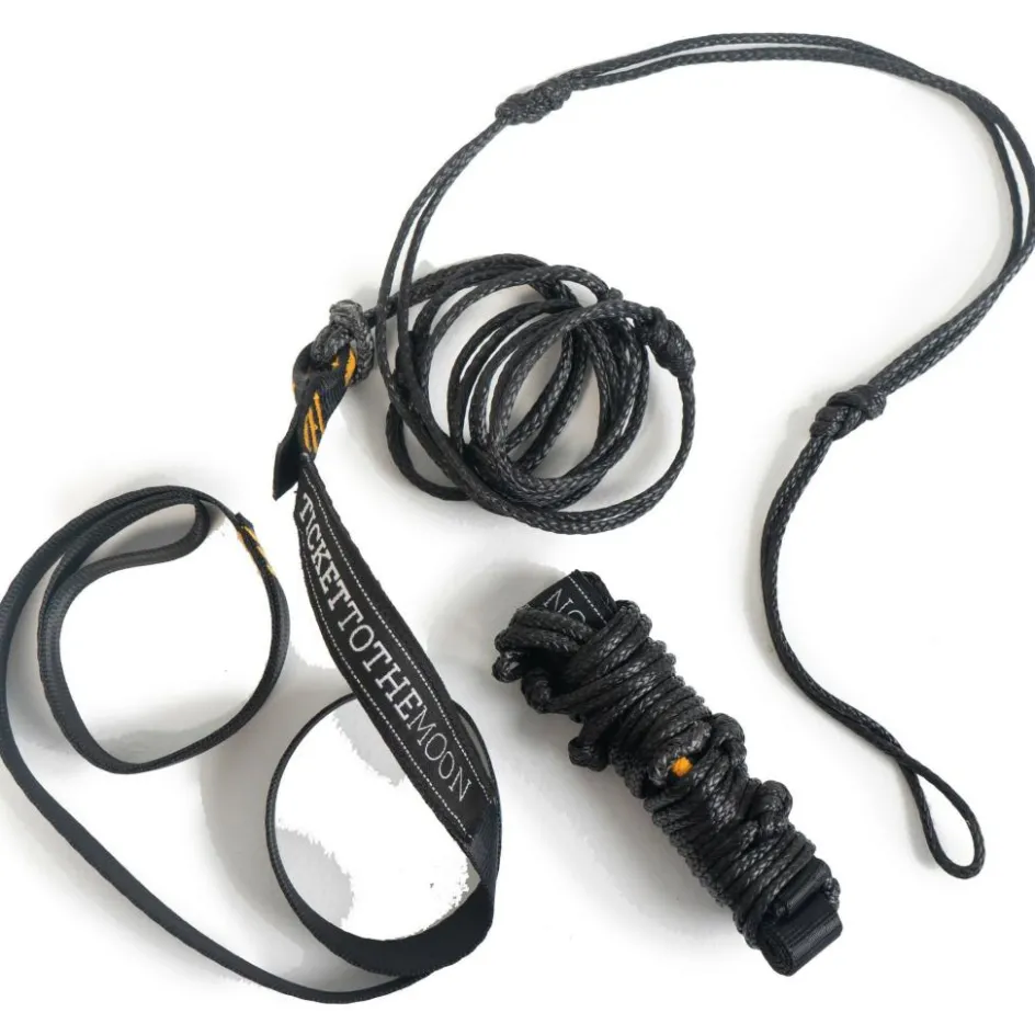 De Ticket to the Moon Lightest straps hangmatbevestiging is heel licht en weegt maar 110 gram. Dit dunne touw is stevig en bestaat uit 2 bevestigingstouwen van 1,6 meter lang. Dit touw kan tot 200 kilogram belast worden.